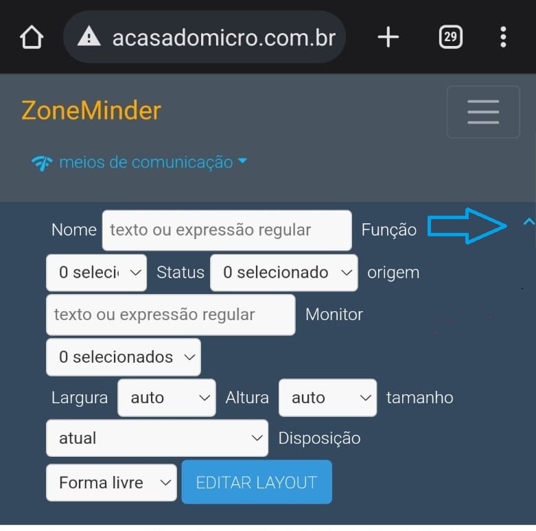 Acesso com celulares http://cameras.acasadomicro.com.br/zm/?view=montage